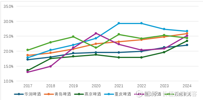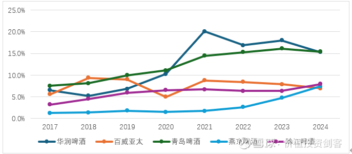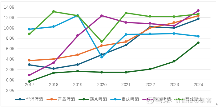 这是另外值得关注的地方。啤酒行业的供给端竞争依然很激烈,但玩家较少,国内来看主要是前五大啤酒企业的竞争,新玩家进入难度较大。对啤酒行业来说,产品、品牌、渠道、生产能力都缺一不可,新玩家想短期建立起足够产品力和渠道非常困难,至于品牌则更是需要超长期的投入,在短期维度我看不到新进入者的机会。对于存量玩家来说,虽然竞争也很激烈,但目前看在经济如此困难的2024年和2025年上半年,各家啤酒龙头依然保持了稳健的利润水平,也并没有出现大幅的下滑或者亏损,这已经好于其他很多行业了。