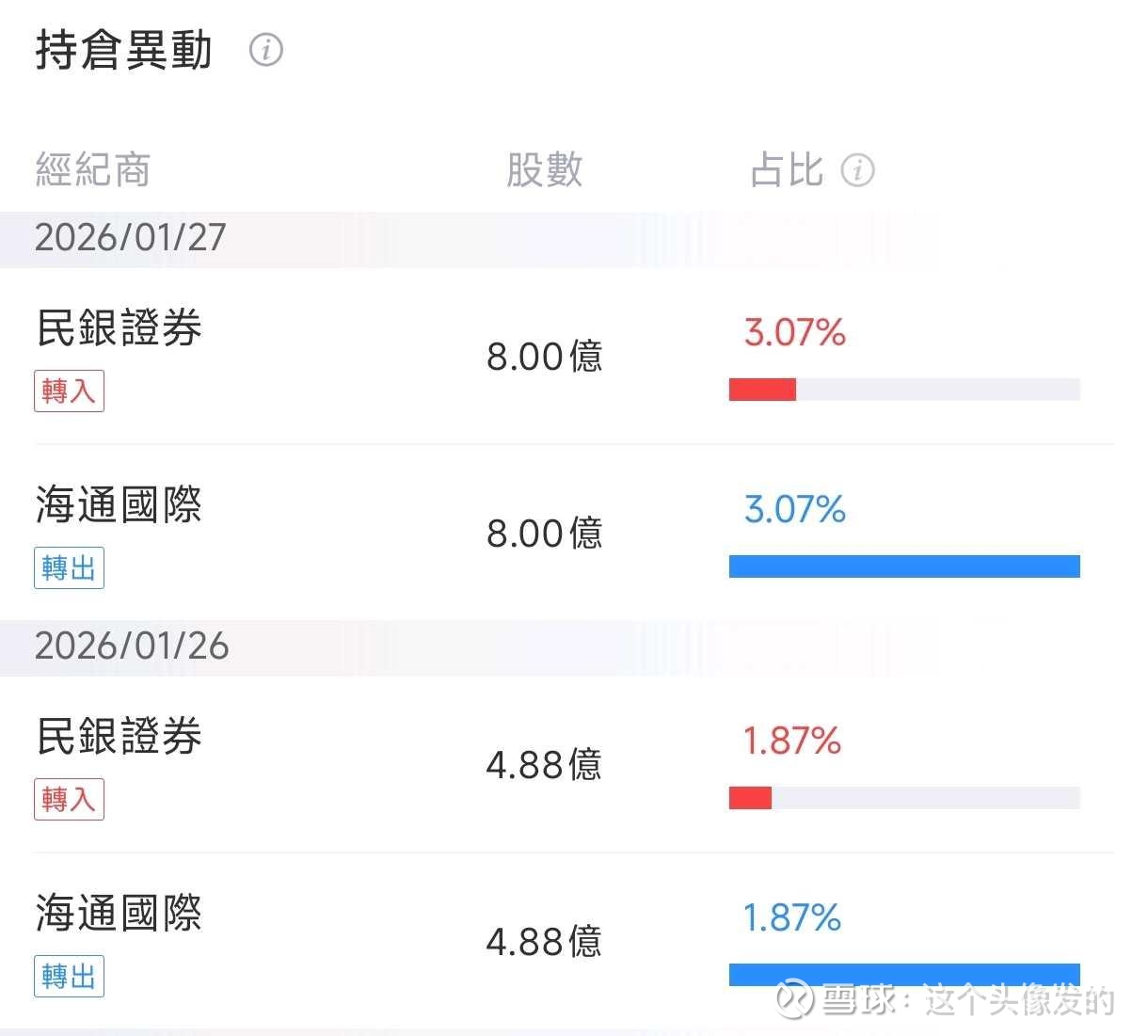 ⅱ. 民银证券与海通证券增加及减少的约12.88亿股实质为转仓。