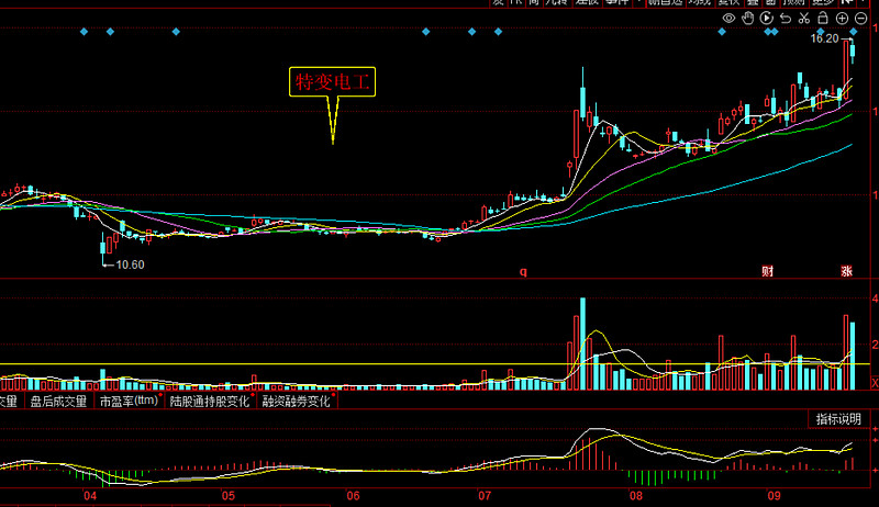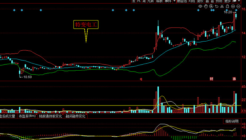 今天的特变没有再给我们惊喜,而是走最普通的路线,分歧,洗盘,一致三步骤,昨天的突破封板,量能7.3,明显的倍增量,价格超出布林带上轨,洗盘的作用是洗去浮筹,让所有人齐心协力,共同推进股价走向另一高度,而分歧是一部分前期套牢盘出逃,一部分是获利盘了结,什么时候才是一致,直到地量地价的出现,量能跟启动前一样同时又是一根止跌K线,届时,新一轮的涨幅将又重新开始,最好的情况是怎么样呢,那就是N字板战法,我不知道是不是会发生,下周见分晓。