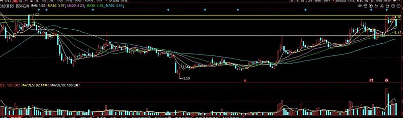 国海昨天收一个中阴线,虽说有板块合力的原因,但其本身也有相应的因素,我们从日K图来详细分析一下国海目前的状况,以及将来可能发生的走势。