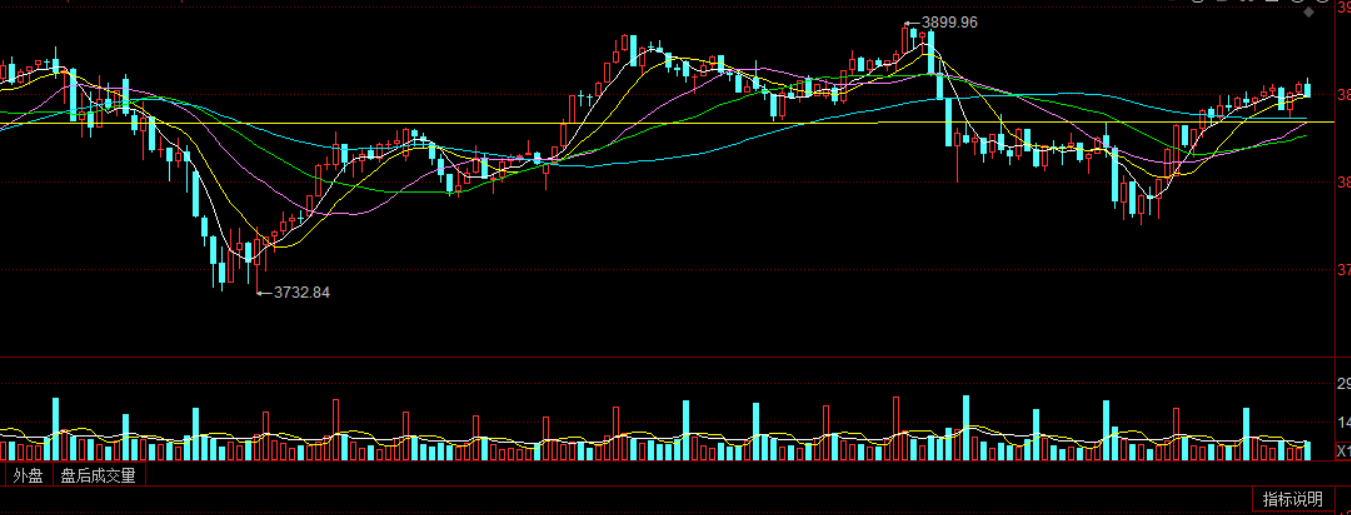好吧,我们看上证指数30FK图,虽然抠抠索索,但还是沿着MA5上升,中间一次下杀到MA10的位置,马上V起,最后半小时微跌,显然,银保证对上证的重要性不言而喻。