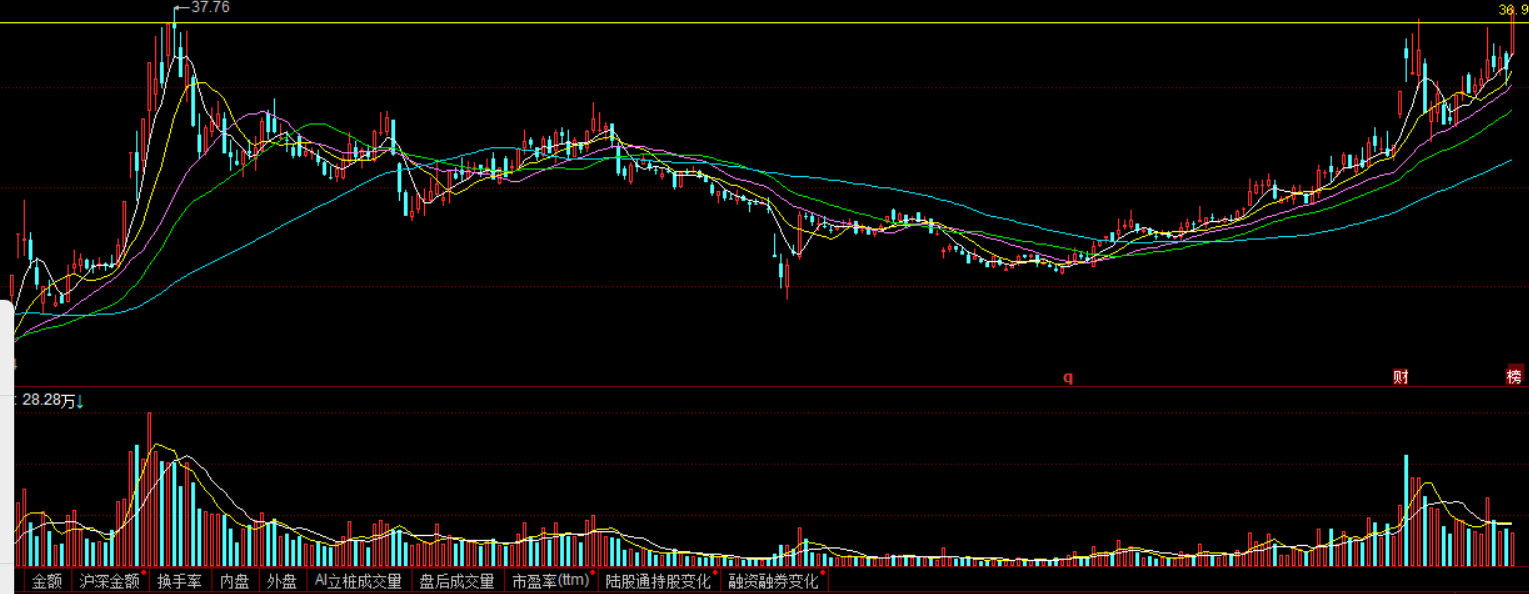 如果说目前市场最热的板块肯定是半导体,由于长川科技提前通报三季报预增134%,一下子引爆股价,连续两个二十厘米,把整个板块的热度都炒起来了,通富微电昨天以一个缩量涨停突破颈线,距离历史新高也只有一线之隔,不出意外今天就能收获新高,而从模型来看,通富的牛市时间显然还很长,有兴趣的家人们可以参与一下