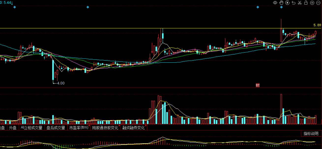 中矿周K同样也是刚刚突破颈线,即将向下一个压力位74进军