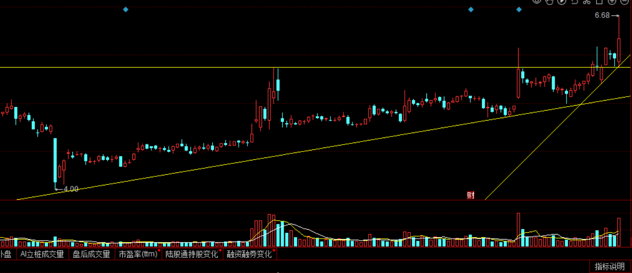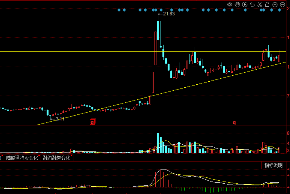 天壕昨天给我们长脸了,看到很多家人们从中受益,不受大盘影响,其实挺骄傲的,天壕昨天的走势还给我们一个很大的收获,就是确立趋势线,这条趋势线有什么作用呢,比如接下去天壕怎么走,首先我们看到现价出现乖离率较大,下周洗盘的概率较大,但是洗盘时间不会太长,一两天调整应该就差不多了,所以昨天有人问我量太大了怎么办,我跟他讲可以适当减仓锁定利润,下周还有机会加仓,这时水下加仓法就派上用场了,还有,如果洗盘到位了,趋势线会很清楚的标识出来,这样操作起来是不是爽歪了,所以说这条趋势线值得@若溪mimi 的红包,是不是