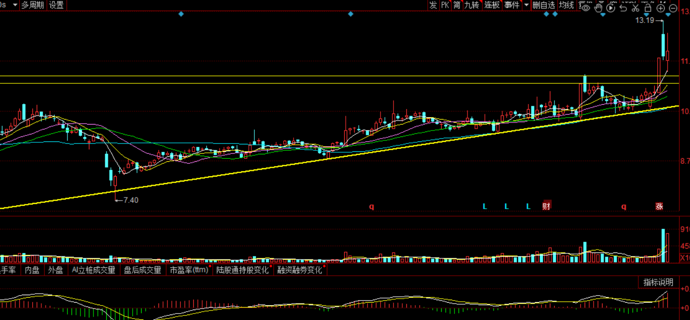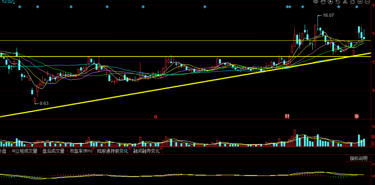 天壕这两天可能会有洗盘动作,放量长上影线,既是分歧也是压力,有必要在这里洗去浮筹,才能有利于更好的上升,这时可以水下加仓,同时做T,仓位不够的机会来了,细心的朋友也能发现我把颈线移上来了,这代表了新的突破,也有了新的上升轨迹。旧的趋势线已经不能适用,新的趋势线正式启用了。