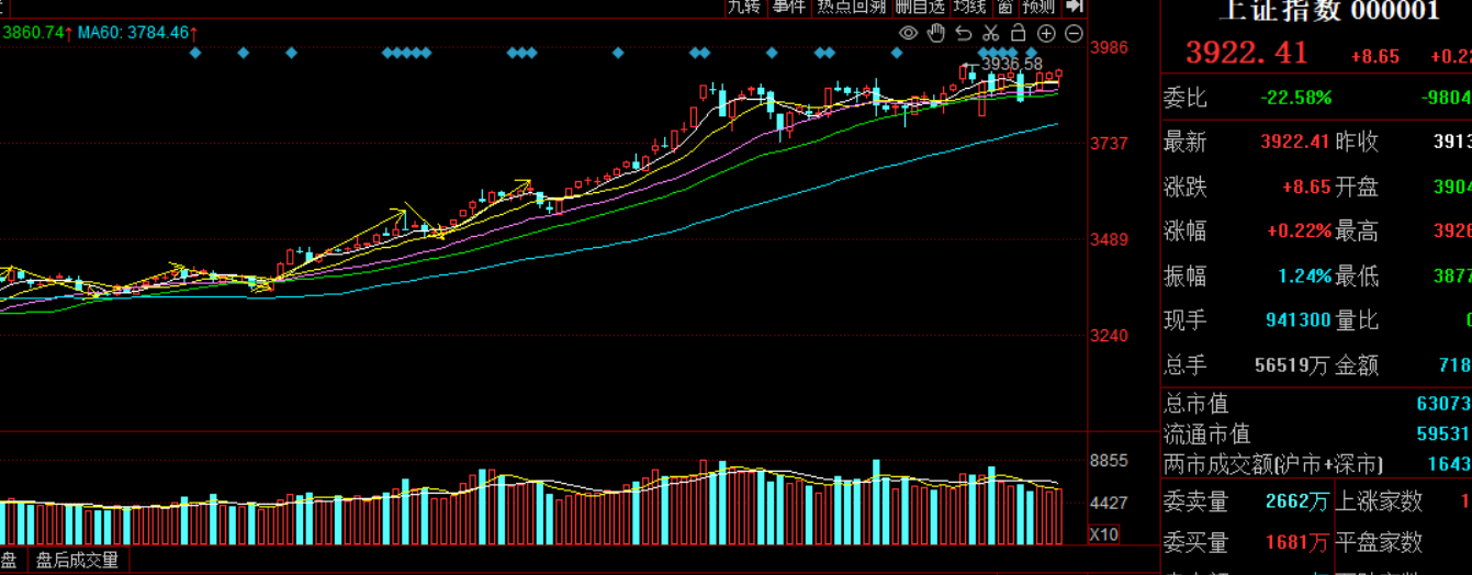 昨天大盘在证券的带领下,从水下V起,成交额再次缩小到16439亿,缩量上涨,这里没有上攻无力的感觉,反倒有点筹码惜售的味道,是不是这样得等今天的进一步验证,当然个人认为引领大盘进一步上涨并且突破4000大关,证券应该是领军板块。