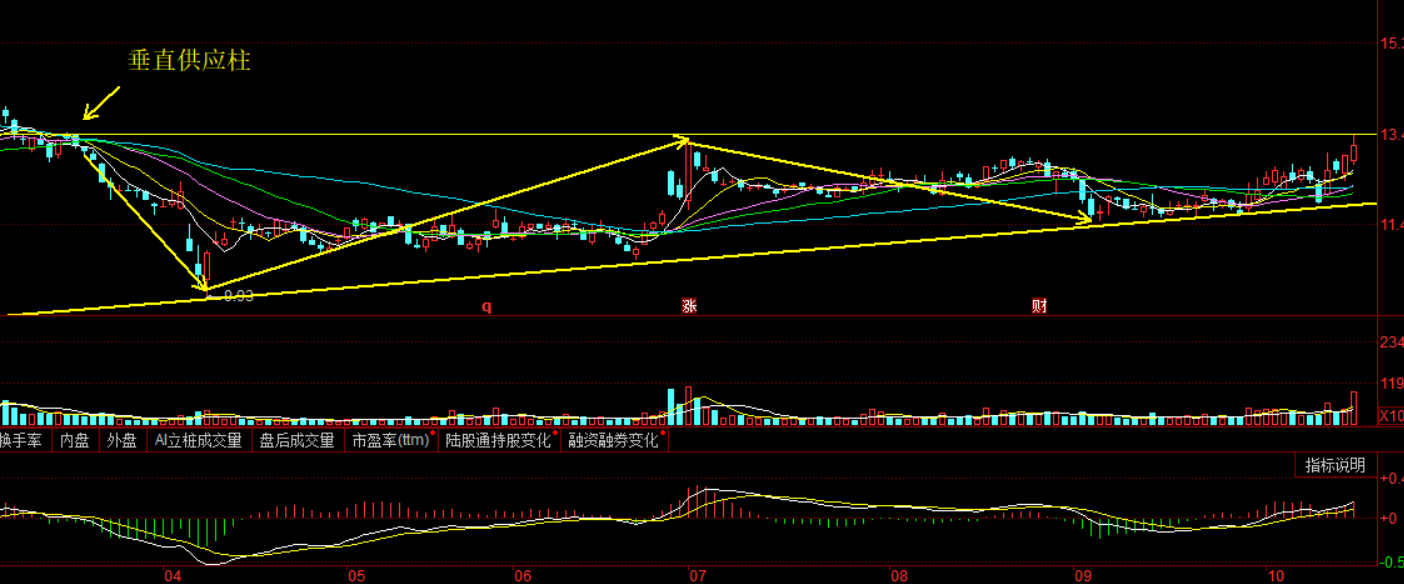粤桂昨天一个小阳柱反包前一个阴柱,只是没有越过最高价,实体部分反包,量能微缩,并没有突破15.27的意向,持股待涨。