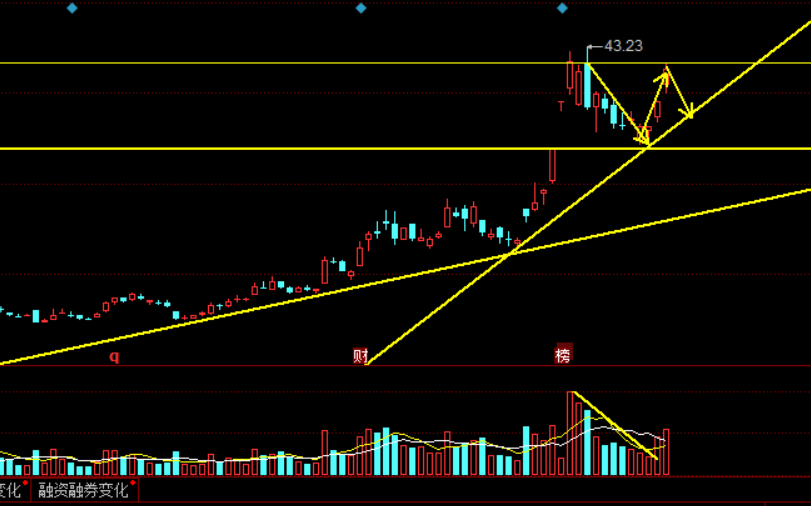 江西铜业同样遇到了最大压力位42,昨天的最高价41.97,虽然量能不小,但却没能突破,今天除非更大的量来突破整数关,否则会调整到趋势线再上,走三角旗形,如果走三角旗形,那到了趋势线就可以加仓了。