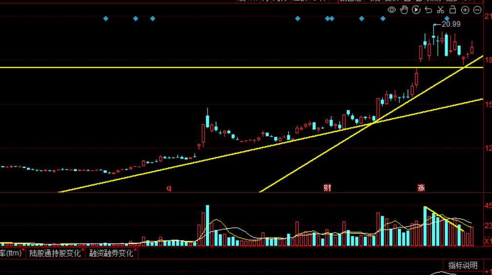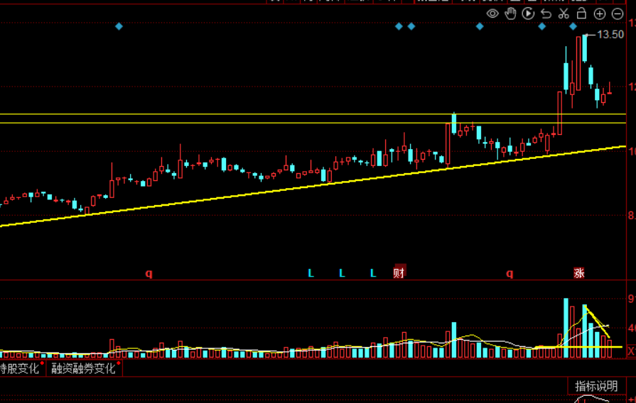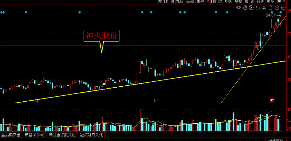 长川刚入就遇上压力十字星,而且量能温和放大,所以今天有调整的需求,如果看到调整不必惊慌,或许两天就好了,只需把量能降下来就可以了,只要在趋势线上就是安全的。