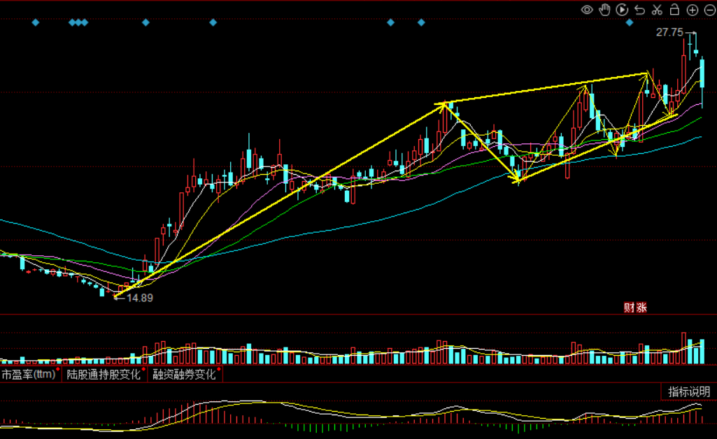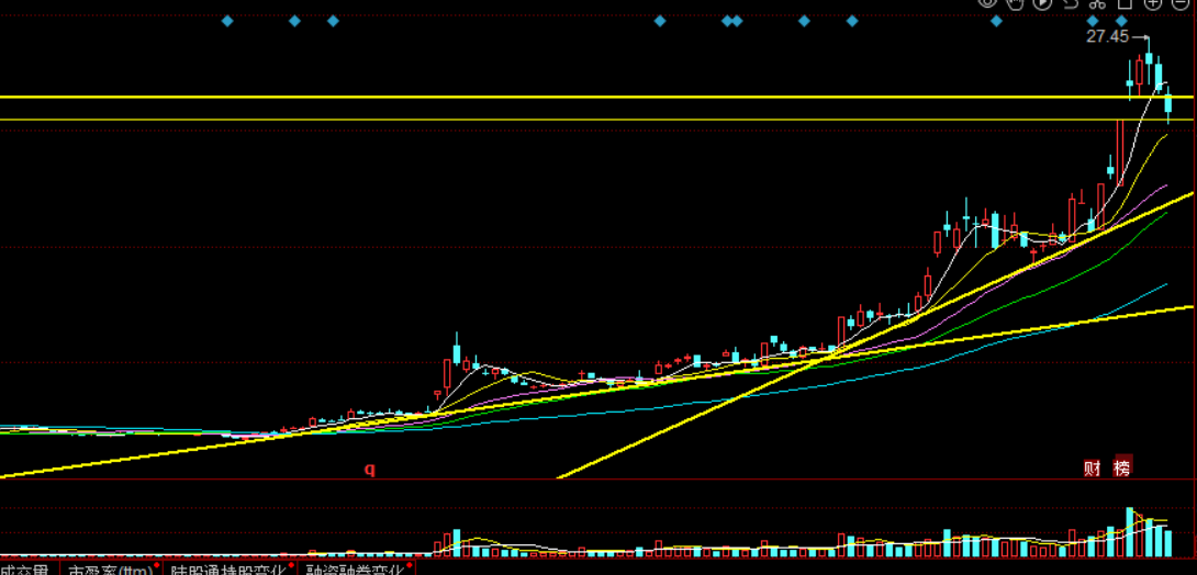 赣锋昨天几乎踩到三十日线反弹,最终收在二十日线上,量能明显缩小,当价格在底部时,量能缩小价格上涨时,说明此处大家筹码惜售,只需要很小的力量就能让价格反弹,因此赣锋调整结束的概率很大,同时楔开结构的第五脚也成功落地,那么赣锋大概率要反攻了。赣锋的目标价很高,比一些朋友认为的都要高一些,但这里就不再讲目标价了,我不想再给自己带来无形的枷锁了,我说的话目标价还有几个没实现的呀,除了天壕,还有哪几个,我自己都忘了