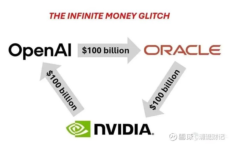 你看这张图就懂了,英伟达投资1000亿美元给OpenAI。OpenAI拿了钱,转身就可能把钱付给甲骨文这些云服务商,租用他们的数据中心 。