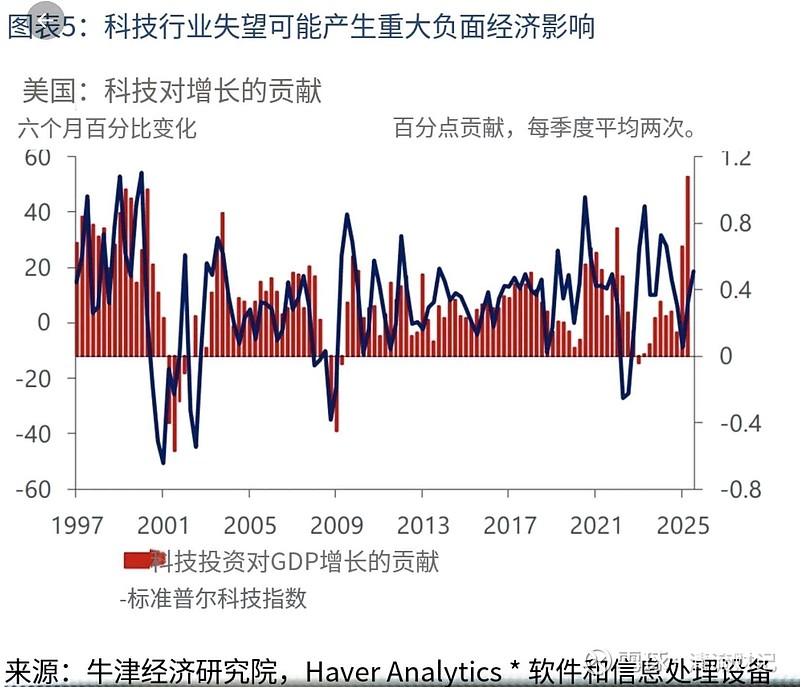 悲观脚本:根据德意志银行的数据分析,如果没有AI领域的巨额投资支撑,美国经济可能早已陷入衰退。 这意味着,如果AI带来的生产力革命不及预期,或者最终失败,我们很可能将重演2001-2002年那样的局面:现有货币体系承受巨大压力甚至面临崩盘风险。