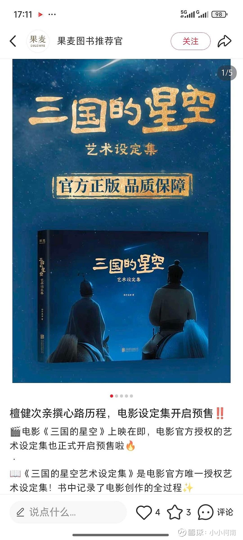 出版方怎么能少了图书,一部介绍《三国的星空》官方周边来了。
