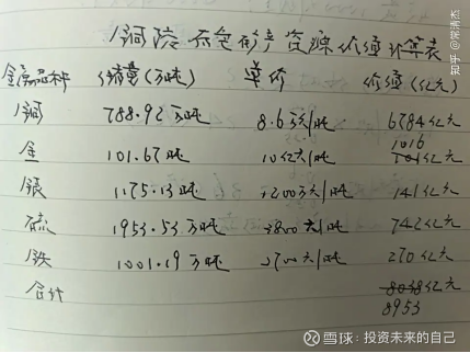 铜陵有色矿产资源价值为8953亿元,2025年11月21日收盘,铜陵有色市值649.02亿元,股价4.84元。(铜陵有色期望价值30元--45元)市值/矿产资源价值=649.02亿元/8953亿元=0.07。正常系数为0.4~0.6。0.4/0.07=6 0.6/0.07=9
