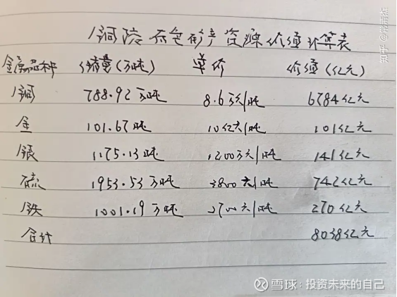近日铜陵有色等有色资源股大涨大跌,引起部分朋友产生恐慌情绪。现将铜陵有色矿产资源价值估算如图。经知友指正,金的资源价值计算有误。特作修正。
