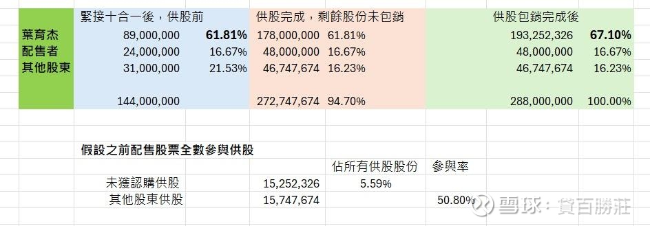 另外,假设之前用尽授权配售安排的股份全数参与大折让供股 (原因你懂的),是次供股只有 50.8% 的街外股东参与,总共供了15,747,674 股,未扣除成本总共从街外获得了 HK$3,149,535。要知道主席叶育杰为人乐善好施,致力于家乡建设,单是 2018年就向惠州市叶挺中学捐赚建设了 600万元,其他善事多不胜数。又分别是澳门和香港马会的会员,多年来名下有多只马在港澳参与赛事,所以可以判断是次供股并不是为了单单拿这三百万元的街外钱,更有可能是为了印筹码而进行的。