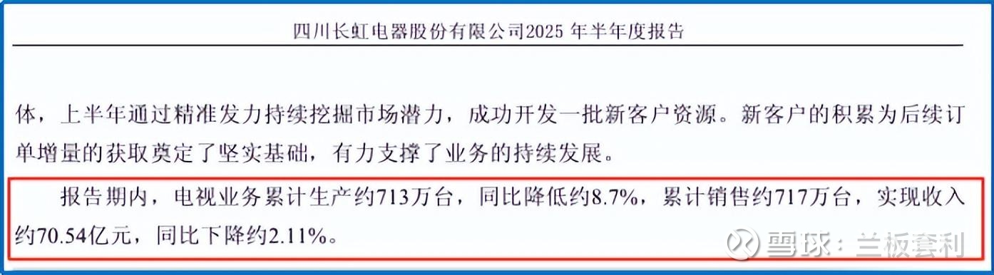 出货量和业务收入方面同样不容乐观。2025 年上半年,四川长虹电视出货量同比下降 5.7% 至 717 万台,业务收入 70.54 亿,也同比下降了 2.11%。整个中国电视市场品牌整机出货量 2025 年上半年达到了 1662.5 万台,同比增长 1.4%,在这样的大环境下,四川长虹的下滑显得更为突出。