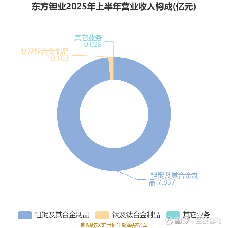 在东方钽业的业务版图中,钽铌及其合金制品业务无疑是最为闪耀的明星。2025 年上半年,该业务实现收入 7.84 亿元,同比增长 35.50% ,占公司总营收的 98.35% 。