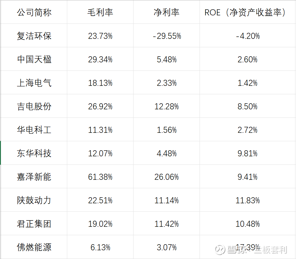 净利率反映了企业在扣除所有费用后的最终盈利状况。嘉泽新能同样表现出色,净利率达到 26.06%,这表明其不仅在成本控制上成效显著,而且在运营管理、费用把控等方面也做得相当到位。吉电股份、陕鼓动力和君正集团的净利率均超过 10%,说明这些企业在综合运营效率和盈利能力方面表现良好。复洁环保净利率为负,可能是由于其正处于绿色甲醇业务的前期投入阶段,研发、市场拓展等费用较高,尚未实现盈利的转化。