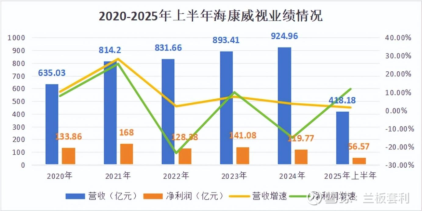 从营收数据来看,海康威视同样成绩斐然。2024 年,其总营收达到了 924.96 亿元,同比增长 3.53%,在复杂多变的市场环境中,依然保持着稳健的增长态势。2025 年上半年,公司实现营业收入约 418 亿元,同比微增 1.48%,延续了近 20 年的增长势头 ;归母净利润为约 56.57 亿元,同比增长逾 11%,时隔三年重回增长轨道。