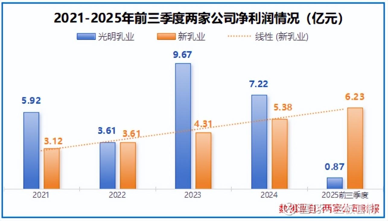 然而,2025 年财报数据却如同一颗巨石投入平静湖面,激起千层浪。光明乳业的业绩表现令人大跌眼镜,前三季度净利润仅仅只有 8721 万元,而单三季度更是净亏 1.3 亿元。曾经那个在低温鲜奶市场呼风唤雨、被誉为 “鲜奶王者” 的光明,如今却陷入了业绩困境,市场份额不断被竞争对手蚕食,往日的风光早已不再。