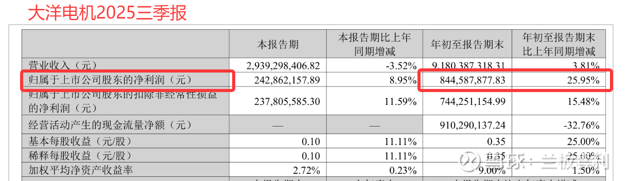 净利润是衡量一家公司盈利能力的关键指标,而大洋电机在这方面的表现堪称惊艳,就像一颗在夜空中闪耀的明星。2025 年上半年,公司归母净利润达到了 6.02 亿元,同比激增 34.41%,这样的增长速度在行业内实属罕见;前三季度净利润更是高达 8.45 亿元,同比增幅 25.95%,远超行业平均水平,让同行们望尘莫及。