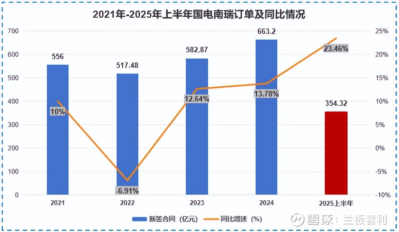 2025 年上半年,国电南瑞新签合同额已达 354.32 亿,这一数据犹如在行业湖面投下巨石,激起千层浪。回顾以往年份,国电南瑞上半年订单额通常占全年总订单额的 45% 左右。按照这个规律推算,2025 年整年的订单额或将突破 780 亿。如此庞大的订单量,无疑为公司未来 2 - 3 年的业绩筑牢了坚实的基石。它就像一艘巨轮,在茫茫商海中,凭借充足的订单 “燃料”,能够稳定地驶向远方,不惧风浪的侵袭。这不仅意味着国电南瑞在当下市场竞争中斩获颇丰,更预示着在未来一段时间内,公司的业绩增长有着充足的保障,有足够的底气和资源投入到研发、生产和市场拓展中,在行业中持续保持领先地位。