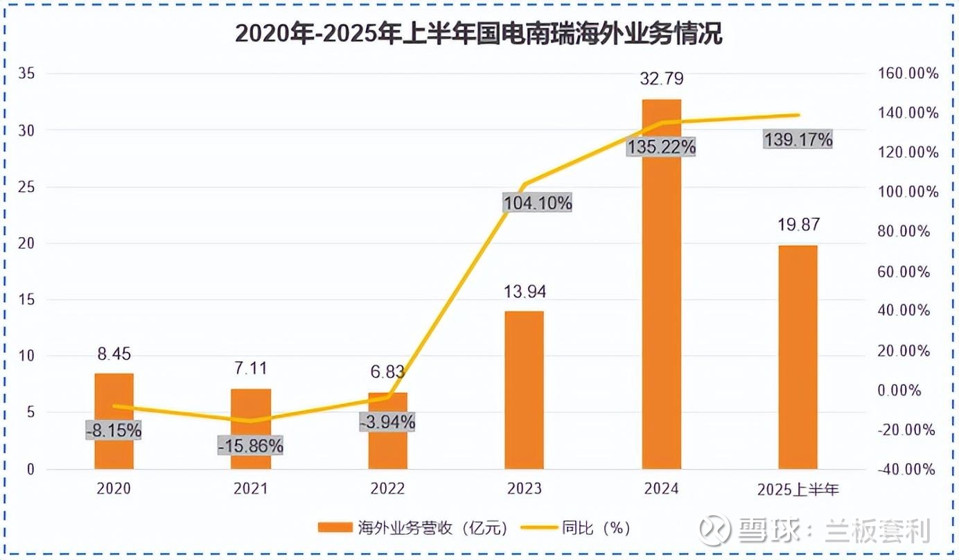 2025 年上半年,国电南瑞在国际市场上的表现令人瞩目,海外营收同比大增 139%,国际合同同比增长超 200% ,展现出强劲的出海势头。