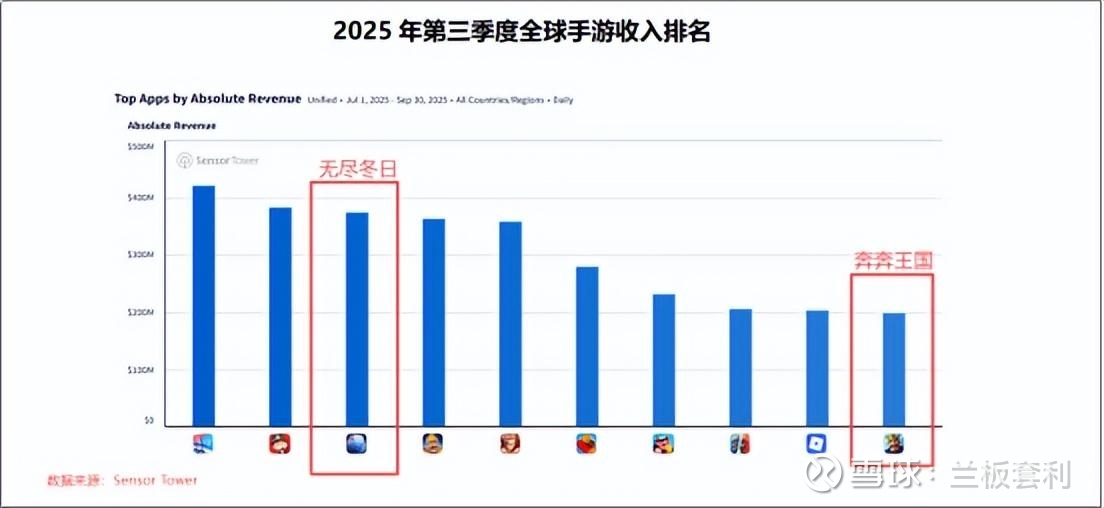 在世纪华通的产品版图中,点点互动旗下的《无尽冬日》无疑是一颗璀璨的明星,但也正是这颗过于耀眼的明星,让公司面临着潜在的风险。2025年第三季度,《奔奔王国》与《无尽冬日》一同上榜,首次跻身全球手游收入前十。