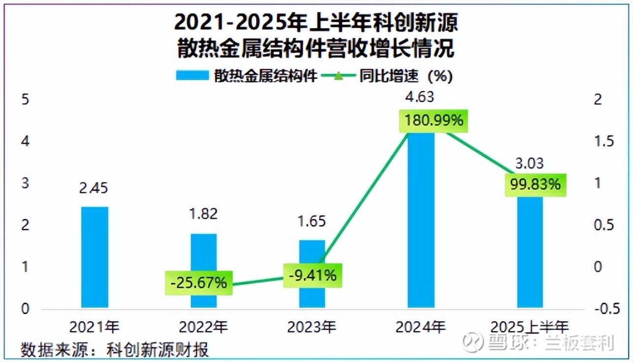时间来到 2024 年,科创新源的热管理业务正式驶入高速增长的快车道,宛如一匹在草原上肆意奔腾的黑马,让整个行业为之侧目。这一年,公司的散热金属结构件业务成绩斐然,同比增长幅度高达 180.99%,这样的增速在行业内几乎无人能及,如同火箭般一飞冲天 。到了 2025 年上半年,这股增长的强劲势头丝毫未减,散热金属结构件业务继续以 99.83% 的高速增长,再次震撼市场。