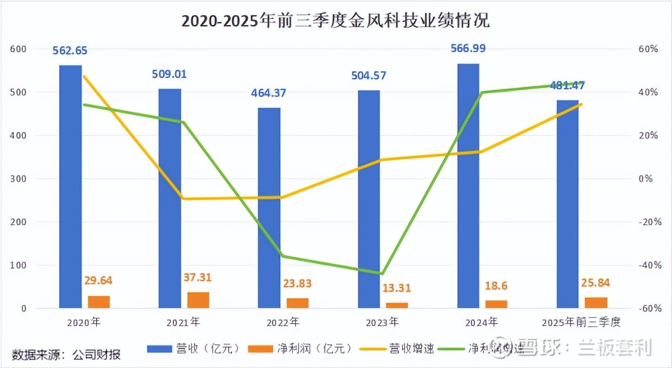数据显示,2025 年前三季度,金风科技实现营业收入 481.47 亿元,同比大幅增长 34.34%,这样的营收增速在行业内堪称亮眼,彰显出公司在市场拓展方面的卓越成效。而归母净利润更是达到了 25.84 亿元,同比增长 44.21%,实现了利润的高速增长 。其中,第三季度单季的表现尤为突出,营收达到 196.1 亿元,同比增长 25.4%,净利润 10.97 亿元,同比暴增 170.64%,这一净利润增速令人惊叹,展现出公司在该季度强大的盈利能力。扣非净利润亦达 24.19 亿元,同比增长 36.15%,表明公司的核心业务盈利能力稳定且强劲,利润增长并非依赖于偶然因素,而是公司主营业务经营改善的结果。