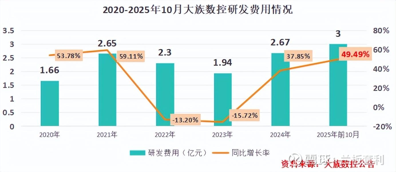 在科技驱动的时代,研发投入是企业保持竞争力、实现可持续发展的关键因素。大族数控深谙这一道理,2025 年前 10 个月,其研发费用达到了惊人的 3 亿元,同比大幅增长近 50%,这一数据不仅在金额上远超以往,增速更是创下历史纪录,彰显出公司对技术创新的坚定决心与大力投入。