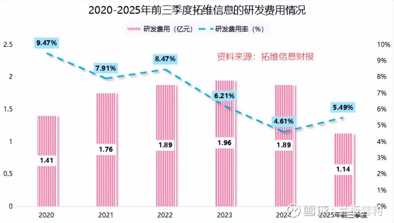 研发投入,是企业创新发展的 “生命线”,对于科技企业而言,更是关乎生死存亡的关键因素。然而,令人担忧的是,自 2020 年以来,拓维信息的研发费用率便呈现出持续下降的态势 。2025 年前三季度,公司研发费用率已经降至 5.49%,研发费用仅为 1.14 亿元,同比又下降了 18% 。这一数据,如同一记警钟,敲响了公司在技术创新能力方面的潜在危机。