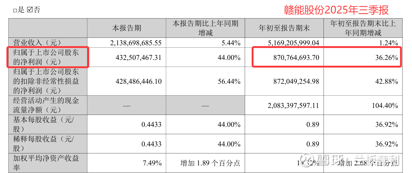 2025年以来,赣能股份顶住能源市场波动压力,凭借精准的经营策略和高效的运营管理,实现了业绩的稳步攀升。前三季度,公司核心经营数据表现突出,实现归母净利润8.71亿元,同比激增36.26%,这份成绩单不仅彰显了公司强大的经营韧性,更体现了其在行业竞争中的核心优势。