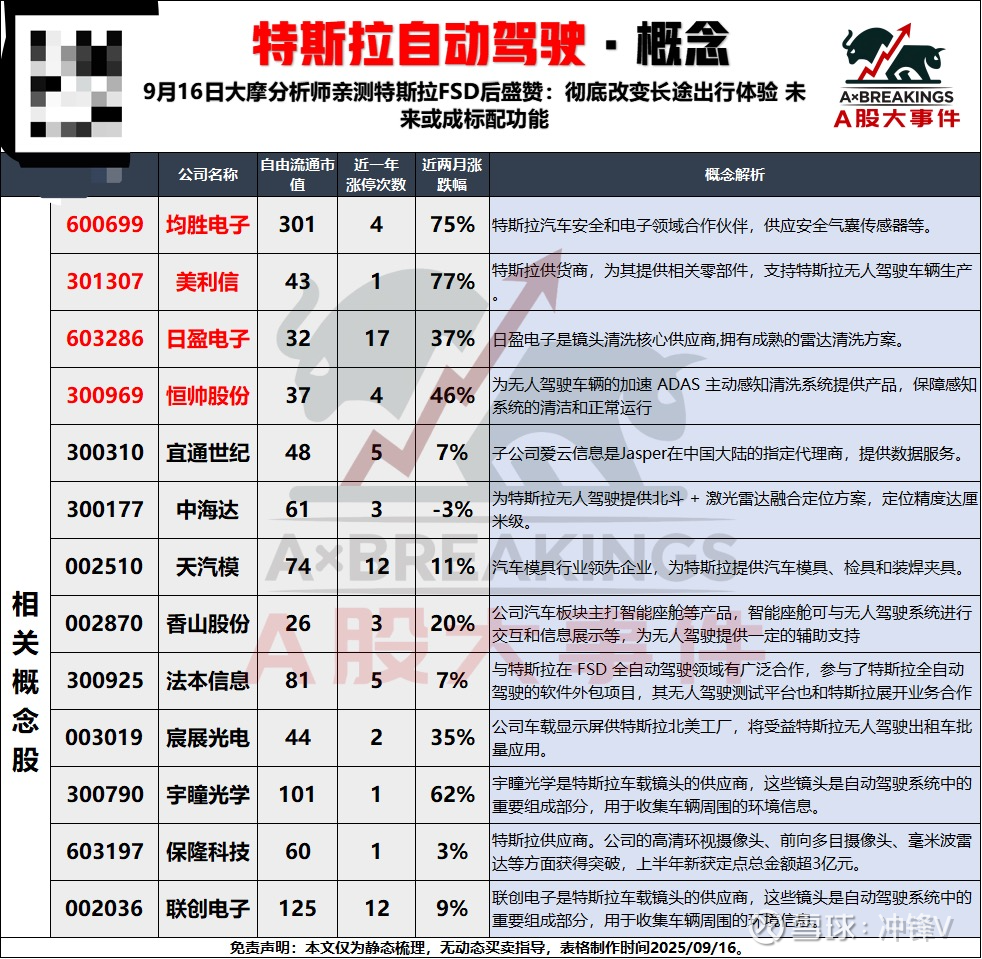 摩根士丹利分析师在亲身体验特斯拉FSD(完全自动驾驶)系统后,对其赞誉有加,认为其彻底改变了长途出行体验,并预计未来将成为电动汽车的标配功能。这一技术突破不仅巩固了特斯拉在自动驾驶领域的领先地位,也为整个产业链带来了新一轮发展机遇。在特斯拉FSD技术的推动下,两家中国公司:天汽模与中海达-凭借与特斯拉的深度合作和技术协同,成为这一波自动驾驶浪潮中的核心受益标的。