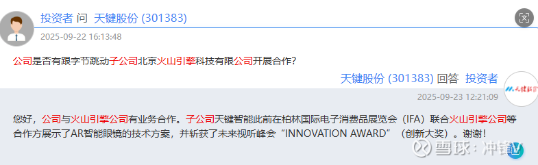 公司2025年6月互动易明确:“部分客户AI眼镜已出货,2025年下半年其他客户订单将陆续量产,整体订单量明显增长。”结合字节生态的投入节奏: