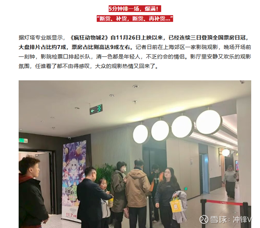 截至11月30日0时,《疯狂动物城2》票房已突破16亿,超越2016年第一部(15.4亿)成为中国影史进口动画票房冠军;单日票房峰值超7亿,打破《复仇者联盟4》保持的进口片单日纪录,且非春节档票房占比超90%,说明影片凭借强IP号召力突破了档期限制。