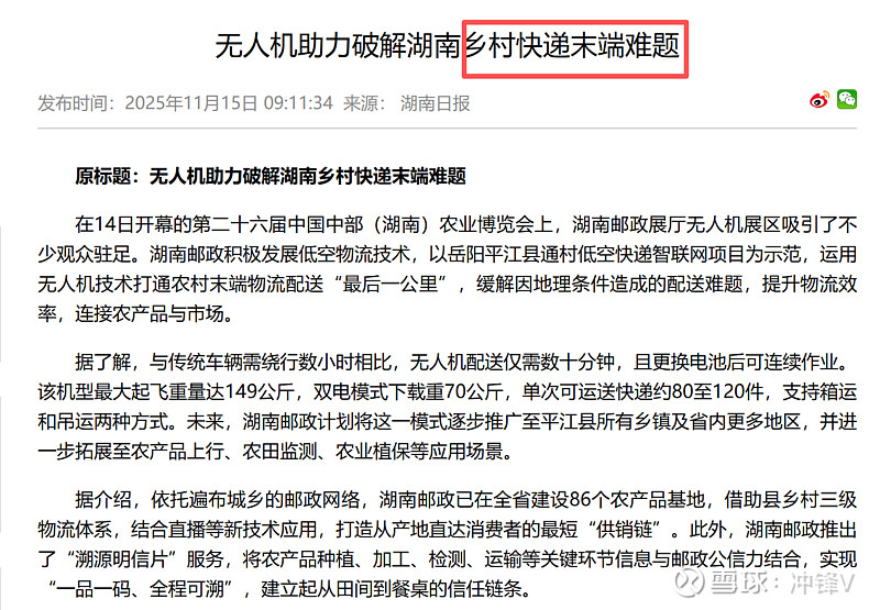 2、湘邮科技精准卡位:公司深度参与并成功保障西安邮政“通村低空快递”首飞,正式打通了陕西县域低空物流通道。这不仅是一次技术验证,更是其作为邮政集团核心信息化平台,在构建“陆空协同”智慧物流网络中占得战略先机的标志。