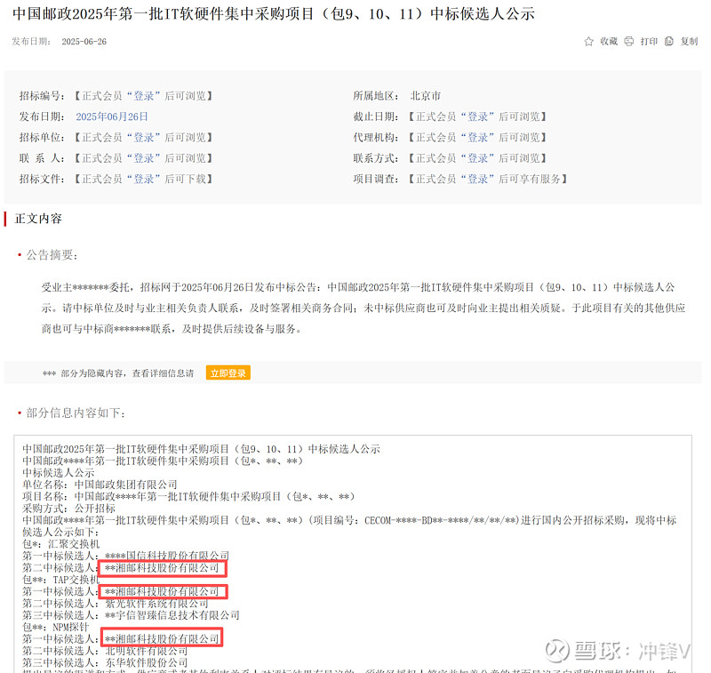 基础设施的参与者:在邮政集团的IT基础设施采购中,湘邮科技同样是重要的中标候选人,例如在TAP交换机、NPM探针等集采项目中位列第一。这表明公司深度融入邮政的数字化“筋骨”之中。
