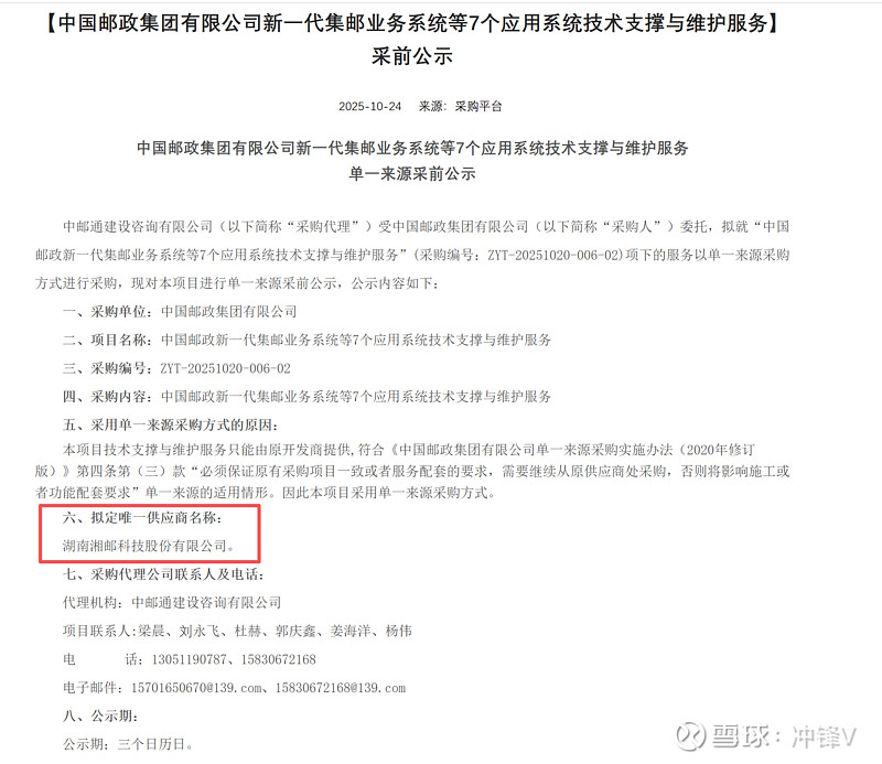 系统命脉的维护者:中国邮政集团的重要业务系统,如新一代集邮业务系统等,其技术支撑与维护服务长期由湘邮科技作为唯一供应商提供。这种合作模式源于系统的高度复杂性和连续性要求,形成了极强的客户粘性与业务壁垒。