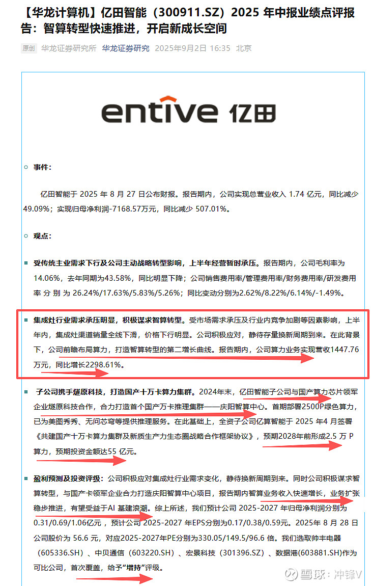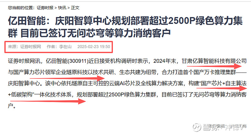 总结:燧原科技获台积电流片许可,是国产算力产业链的一次“松绑”。亿田智能作为与燧原深度绑定、且已跑通商业模式的生态共建者和运营服务商,将成为此事件最直接、最核心的受益者。公司近期优化算力资产的举动,更是为迎接新一轮增长做好了准备。当前市场对其在算力领域的深度布局和巨大成长空间认知仍不充分,预期差显著。$亿田智能(SZ300911)$