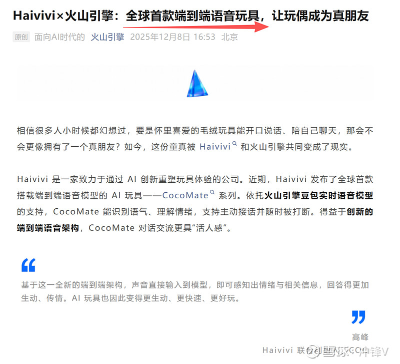 一、火山引擎×Haivivi炸场!AI玩具产业迎来确定性爆发拐点