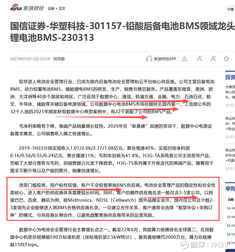 市场地位:隐形冠军,市场份额领先:根据券商研报,公司在数据中心电池BMS领域的市场份额排名国内第一。在工信部2021年评选的32个国家新型数据中心典型案例中,有22个采用了华塑的BMS产品。这种市场地位使其在行业需求爆发时,能最大程度地享受红利。