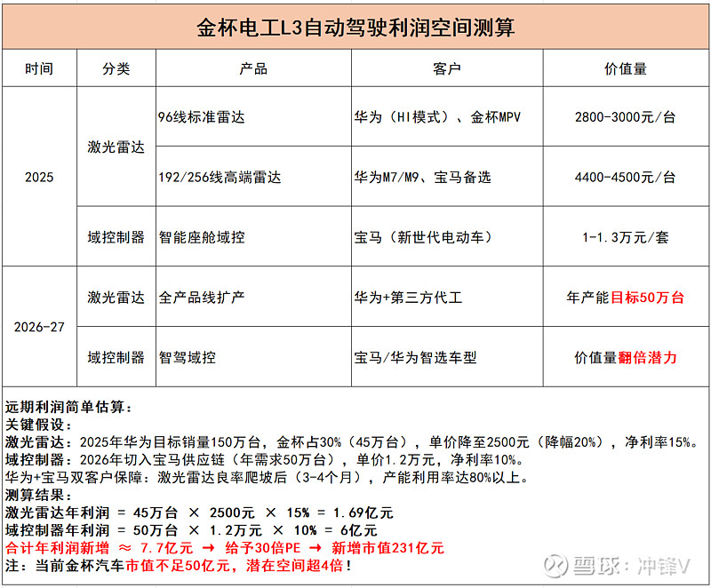 根据金杯汽车调研纪要,公司可能是H公司L3自动驾驶最大预期差标的,以下将从几方面总结,测算表格放前面,重点关注。