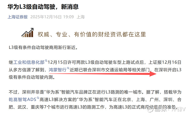 工信部12月15日官宣首批L3级自动驾驶车型准入许可,鸿蒙智行已在深圳开启L3内测(覆盖1000公里高快速路,实测超2万公里),标志着L3商业化落地提速。