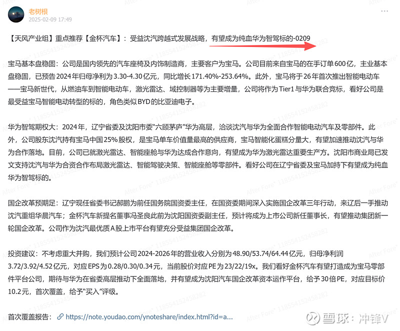 金杯汽车凭借与H公司深度绑定的激光雷达量产订单和域控制器明确合作意向,已牢牢卡位L3智驾浪潮的核心硬件供应链。其独特的“H公司智驾核心代工+宝马电动化转型桥梁+沈阳国改平台”三重身份,赋予了其远超传统汽车零部件企业的成长弹性和估值溢价。