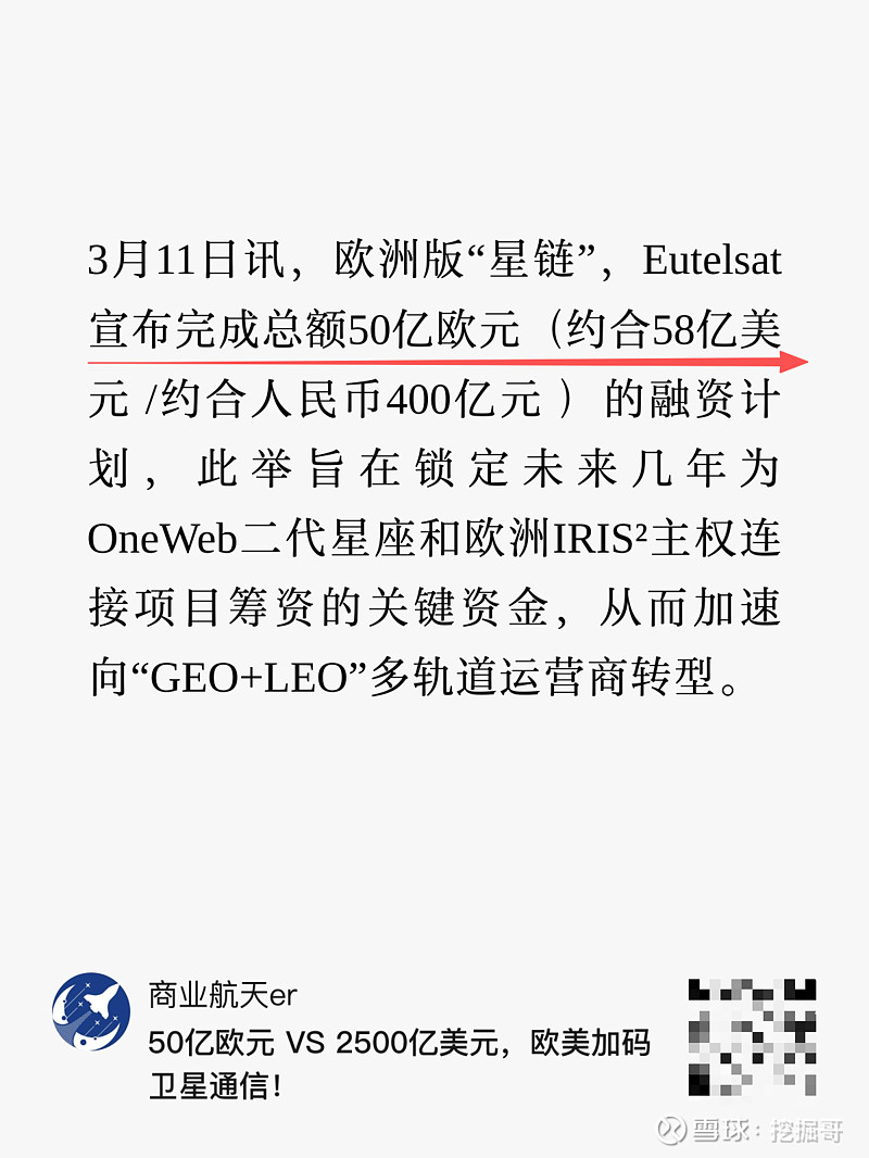 欧洲卫星通信巨头Eutelsat近期完成总额50亿欧元(约合58亿美元)的再融资计划,标志着其向“GEO+LEO”多轨道运营商转型的关键一步。