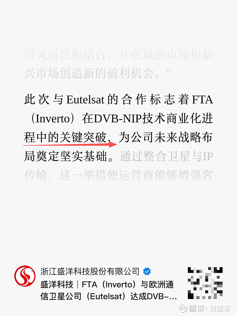 Eutelsat的百亿欧元融资,锁定了未来几年全球卫星互联网,特别是欧洲主权星座建设的资本开支,为上游终端供应商打开了明确的增长窗口。盛洋科技凭借在DVB-NIP领域的独家技术卡位和与头部运营商的深度绑定,已占据产业核心生态位。