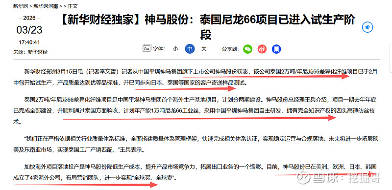 公司泰国2万吨/年尼龙66差异化纤维项目已于2026年2月中旬进入试生产阶段,产品质量达优等品标准,并已向日本、泰国客户寄样测试。此举将助力公司拓展东南亚及欧美市场,提升全球份额。