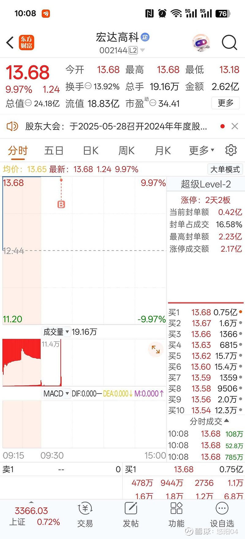 $宏达高科(SZ002144)$